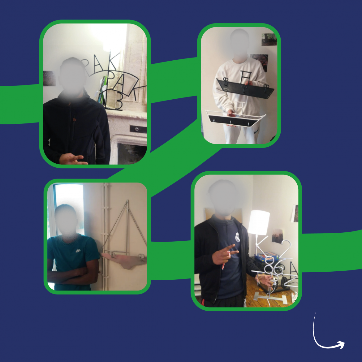 ” L’objectif de ma démarche et ma posture professionnelle, sont d’inciter les mineurs à la créativité, de les valoriser avec des projets réalisables, de leur transmettre un savoir-faire tout en testant leurs capacités à développer leur sens artistique, qui se traduira par l’action de se penser soi-même tout en développant l’estime de soi. ” Eric Laronde, éducateur technique spécialisé